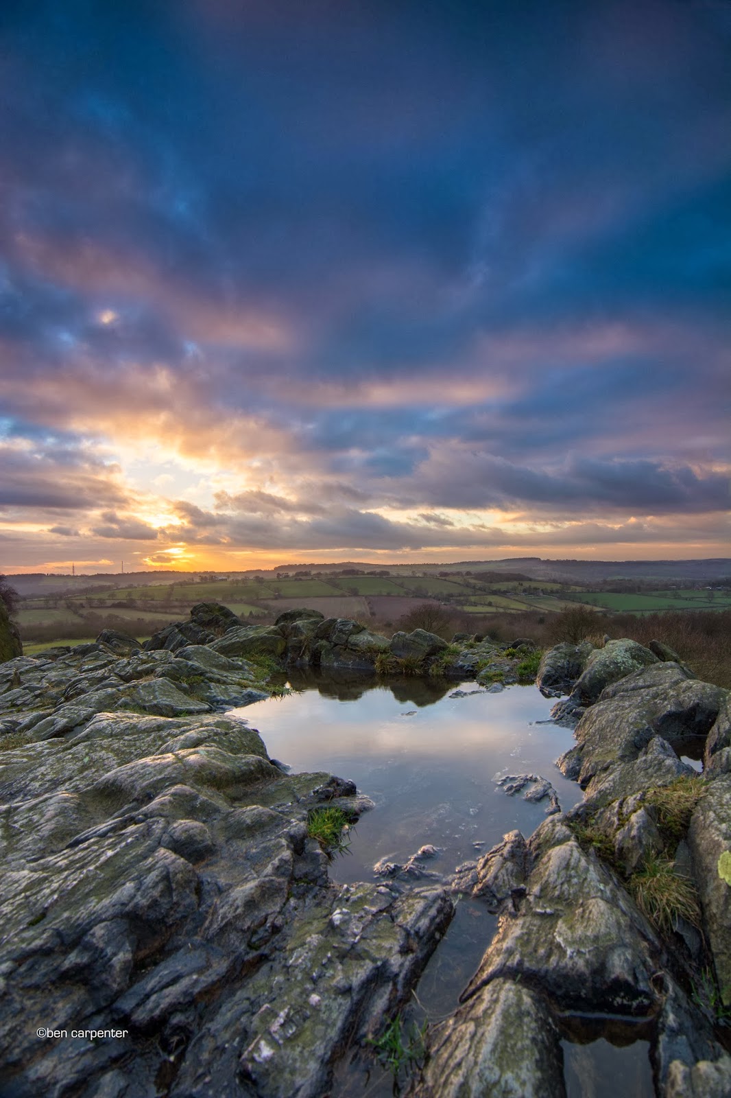 I left it a little late, the traffic was a bit worse than imagined, and I could see the sky brightening as I approached the hill. First lesson learnt and I hadn't even got out of the car! Will leave earlier next time! I rushed into position just as the sky had turned red, and was amazed by how much the sky changed in such a short space of time. I knew where I wanted to shoot from earlier trips at sunset, having already picked a few shots in my mind, I managed to set up pretty quickly. The wind was ice cold and very strong, but I got a few shots I'm pleased with.